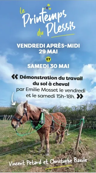 Nous proposons également une démonstration du travail du sol à cheval. Emilie Mosset réalisera la prestation le vendredi et le samedi 15h-18h.